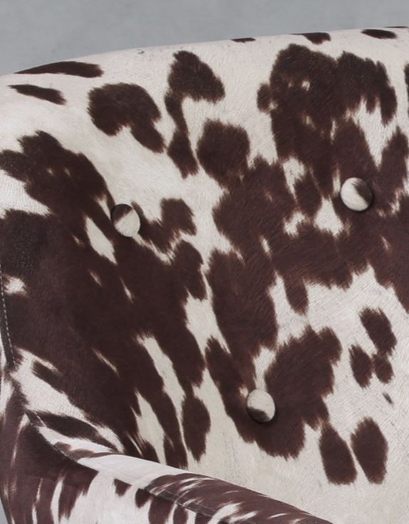 This ‘udderly’ brilliant retro armchair is upholstered in a fabric that feels and looks just like genuine cowhide. Comfortable and elegant, this generously sized armchair would go with all styles and looks but would certainly be a striking piece in any room.