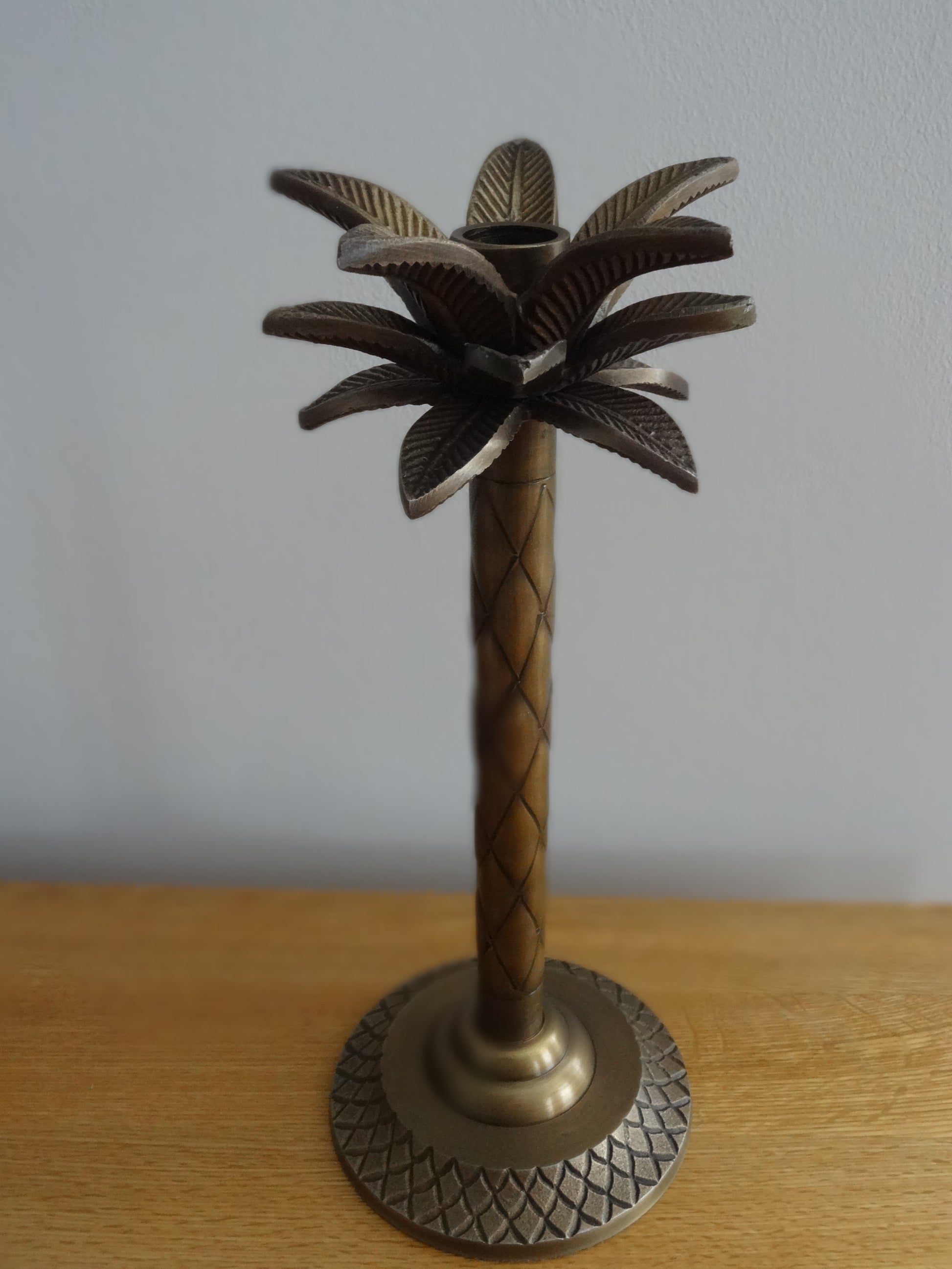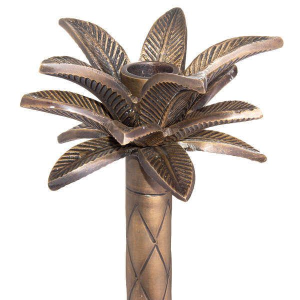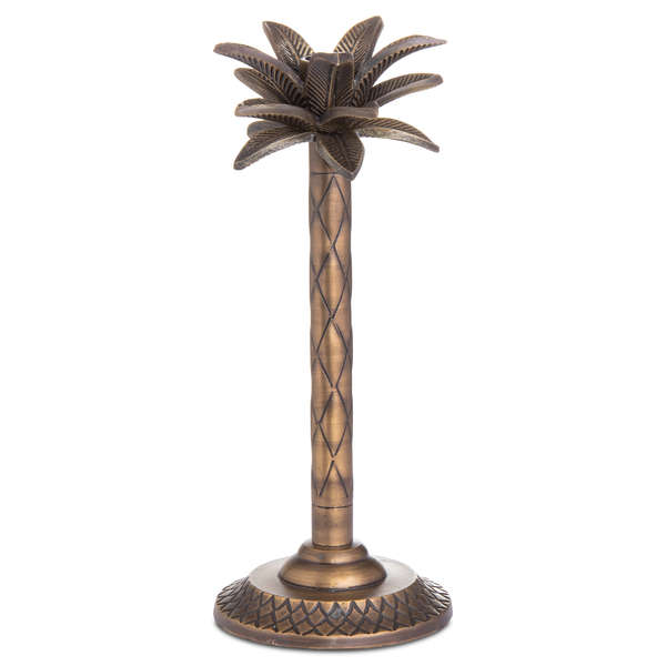 This is the Palm Tree Candle Holder In Brass Finish, a slender and masterfully crated brass item picking up on the trend for tropically inspired intricate metalwork that would make a quirky feature in many spaces. Team with the larger version (20356) and some dinner candles for a perfect candle display.