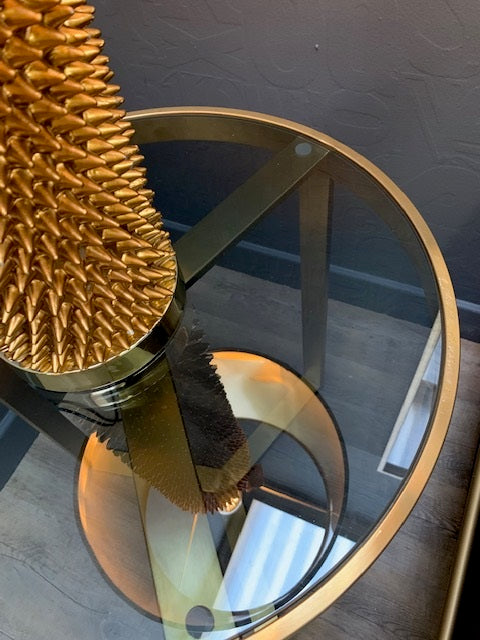 A luxurious combination of black glass and brass metal lend the Edwin collection a Gatsby-esque, Art Deco feel which conjures images of opulance and plenty. The Edwin Stainless Console Table's sleek, geometric design features ensure it feels modern, with just an echo of the golden age.
